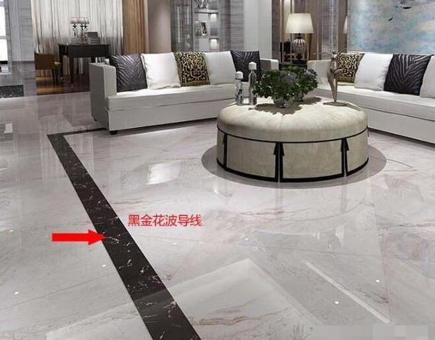 波导线,也称为地平线,圈边线等。主要起的作用是起到分割衔接的作用。让地面的瓷砖铺贴更具有层次感。目前采用的最多的是采用成品瓷砖切割,为了达到这种效果的,根据设计需求,也可以采用石材、马赛克、甚至是鹅暖石、金属装饰线条等,也可以去到和瓷砖波导线相类似的效果。