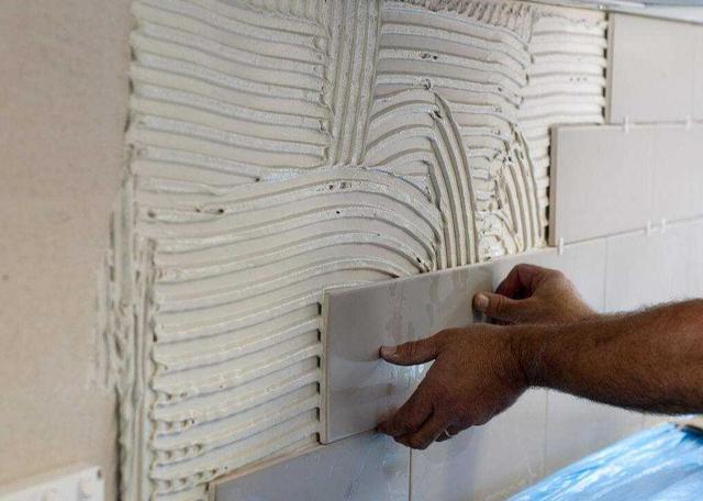 铺瓷砖选用的如果是地砖上墙或理石,这个时候不能用传统的水泥来镶贴,要用专业的胶体来进行薄贴。这样日后瓷砖不容易脱落。