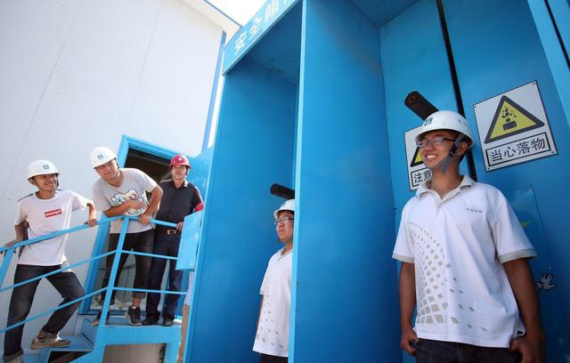 4、升降机周围三面应搭设双层防坠棚;