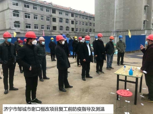 邹城市严格按照济宁市市委《关于统筹做好疫情防控和全面复工复产的通告》的要求,认真制定疫情防控应急预案,备足备齐工地疫情防控及消杀物质,严格要求施工人员测温登记、佩戴口罩,实行施工企业与餐饮配送企业合作分散就餐制,扎实做好棚改项目建筑施工工地疫情防控工作。